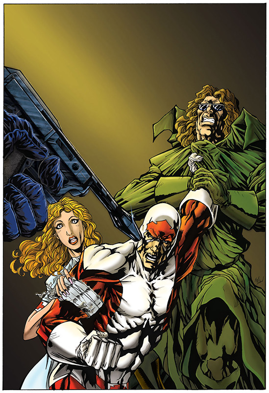 Issue # 3- ‘The Canadian Connection’ sees the RCMP appear, the first appearance of Heather and Canuck injured. Story and art by Richard Comely and second professional comic art by George Freeman. Featuring Cover Art by Hugh Rookwood and an all-new 5 page back story (that takes place between Captain Canuck 3 and 4) by Richard Comely.